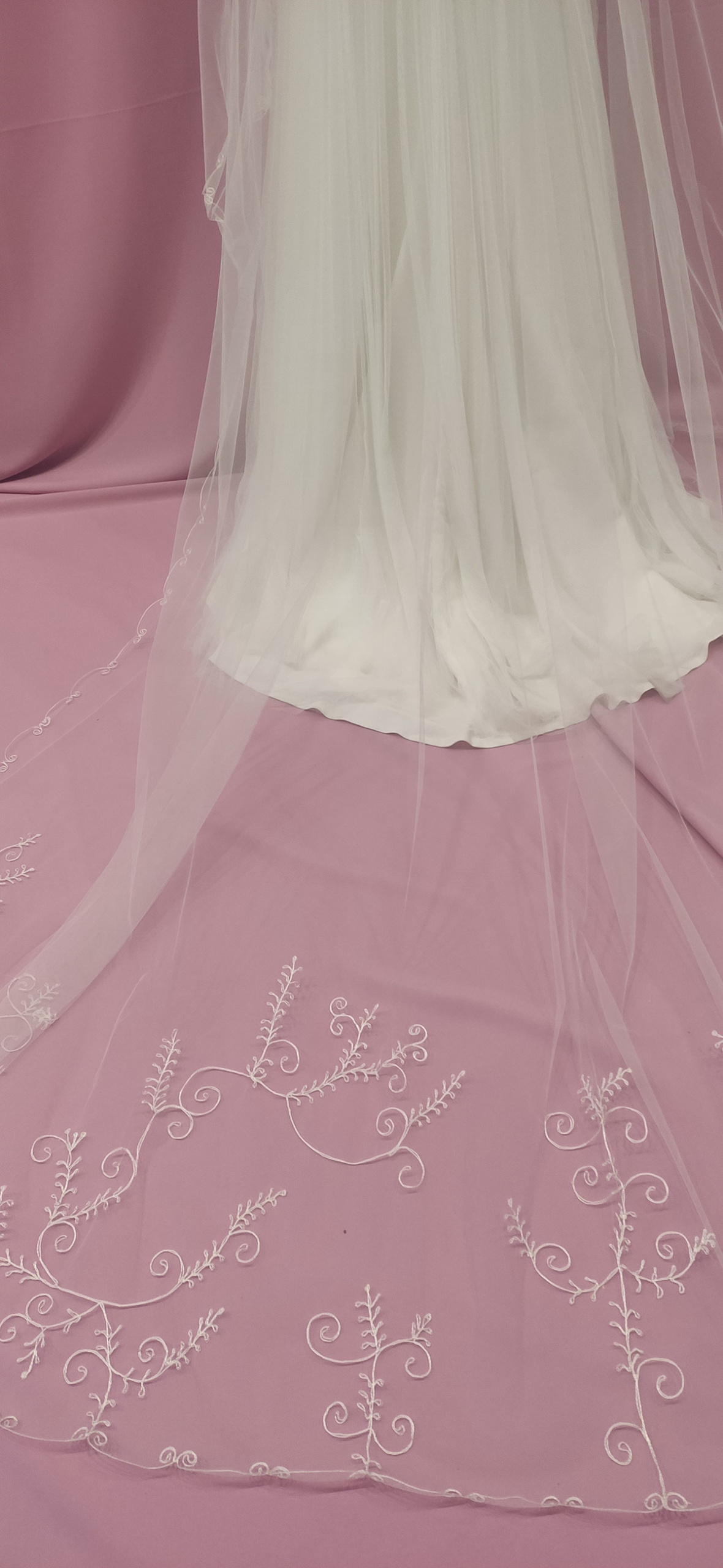 Velo ilusión de cadeneta con fantasía. Medidas: 2,5×3