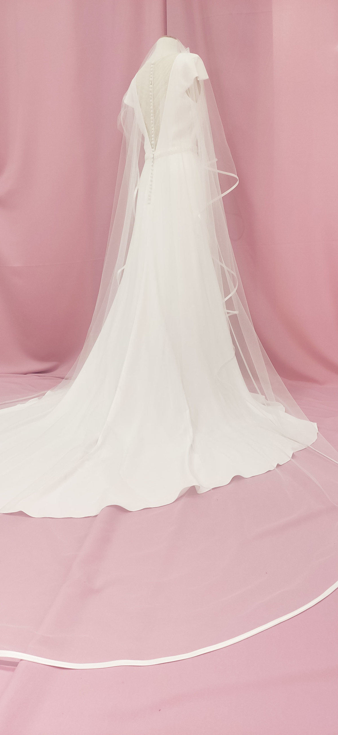 Velo ilusión con vivo de raso en blanco. Medidas: 2×3